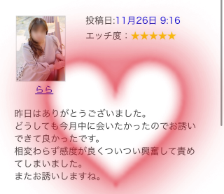 お兄様…こんにちは  今日は朝から昼職で早めに帰宅 して来ましたぁ  帰りにペットショップに行って ペットちゃんのエサを購入したり… いつも後回しにしていた買い物が出来て 満足満足  天気もいいから気持ちいい  でも…朝から「姫日」になって今回は ちょっとお腹痛かったり…腰が痛かったりで あまり調子が良くないなぁ  毎月全然違う症状が出るからビビる  明日には落ち着くといいなぁ…。 今日から姫日になったので次回は… 12月1日から出勤予定です  今月は私の誕生日だから出勤した かったけど…残念  出勤した時は   して下さい