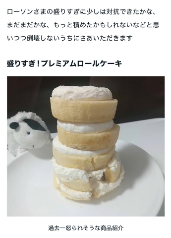 皆様こんにちは少し前のお話になってしまいますが今年もやってきました!ローソンの盛りすぎチャレンジ50%増量企画のプレミアムロールケーキを立ち寄ったローソンで偶然見付けラス2全てを鷲掴みにして脇見も触れずレジに突進した興奮すると周りが全く見えないともみですw因みにこちらは2024年の企画でこの時点では47%増量なんですが2025年の6月の企画では既に50%増量に更に進化していたんですねそして2026年も変わらず50%増量を維持し続けるなんて止まることを知らない物価高の世知辛い世の中で消費者に寄り添った涙ぐましい企画努力に頭が下がる思いですプレミアムロールケーキの画像を色々検索していたらプレミアムロールケーキを何段にも重ねた違う意味での「盛りすぎ!」には笑えましたw世の中には色んな発想力を持った方がいらっしゃるなと思いましたし投稿者様は無事にプレミアムロールケーキを全部食べる事が出来たのか未だに心配ですwそんなこんなで第二弾も大盛り上がり開催中のローソンの盛りすぎチャレンジで皆様は何か食べましたか?ではでは本日の日記はここまでお疲れ様でした女の子ページへ http://365diary.net/d2pnYmtsL3Qvenl1a3VfYmltYXp5by82MjczMjQ0OQ--美魔女コレクションはコチラ