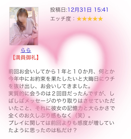 リピのお兄様(安城)…昨日はお誘いありがとうございました1年数ヶ月ぶりのお誘いめっちゃ嬉しかったですメッセージでお誘いするねぇ…と言ってくれて気付いたらそんな聞かんが空いちゃったでも…ちゃんと有言実行してくれたお兄様には感謝ですよねぇ久々に会えて嬉しかったぁも気持ちよくって濡れ濡れも凄かったぁお兄様のやりたかった事も出来てよかった最後はまったりとデザートTime…苺美味しかったよぉクチコミもありがとうございますまたタイミング合った時は…女の子ページへ http://365diary.net/TmY3TFROL3Qvc29rdWFwb19hLzI0MDkxNjAw