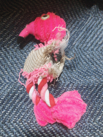 ワンコさんに新しいおもちゃを。昨日買ってあげたのに起きたらこんなんなってました女の子ページへ http://365diary.net/UkN6VXkzL3Qvc29rdWFwb19hLzI4NjA0NDY0