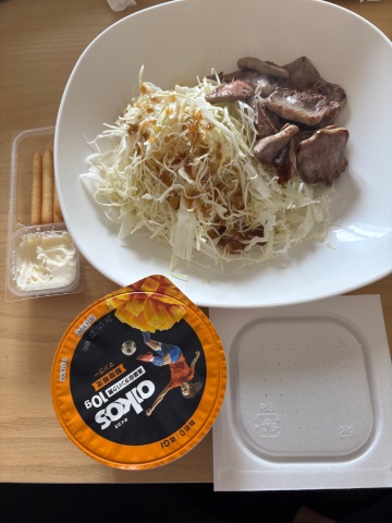 サラダとお肉と納豆!